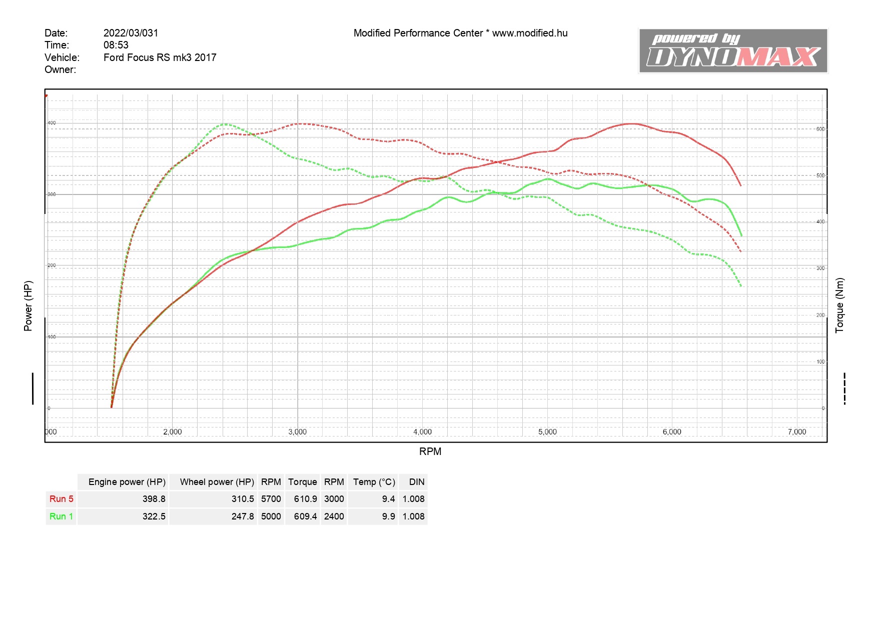 Az összeszerelés ment rendben szokás szerint, majd következett a Revo stage2 programozás és a mérés: a mérőhelységben már füst nincs, az autó szépen húz végig és a görbe is jól néz ki, jellegre hasonló mint a korábbi autók. 610 Nm és 398 LE a csúcsérték. “Természetesen” az alapjárat dadog, hisz a tengely maradt és így alapjáraton nem tökéletes a motorüzem, de ez kárt nem, csupán rosszabb emissziót és furcsa hangot okoz.